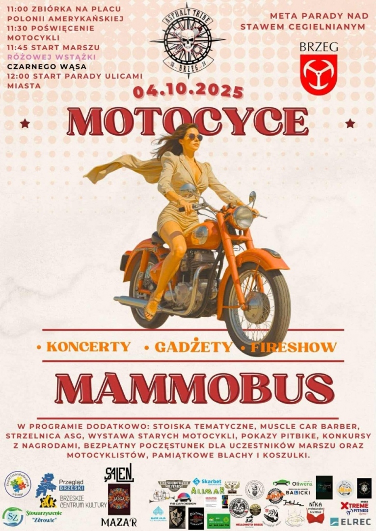 Juz 04 Października 2025r wspólnie ze Stowarzyszeniem Zdrowie oraz Zespołem Szkół Medycznych w Brzegu grupa motocyklowa Asphalt Tribe Brzeg zaprasza wszystkie Motocyklistki i Motocyklistów wraz z Plecaczkami na wyjątkową imprezę pod hasłem MOTOCYCE czyli Brzeskie Zakończenie Sezonu Motocyklowego. Październik to w Polsce miesiąc profilaktyki raka piersi a w związku z tym że prawdziwy motocyklista dba nie tylko o swój sprzęt 😉 ale i o najbliższych stąd pomysł na imprezę!