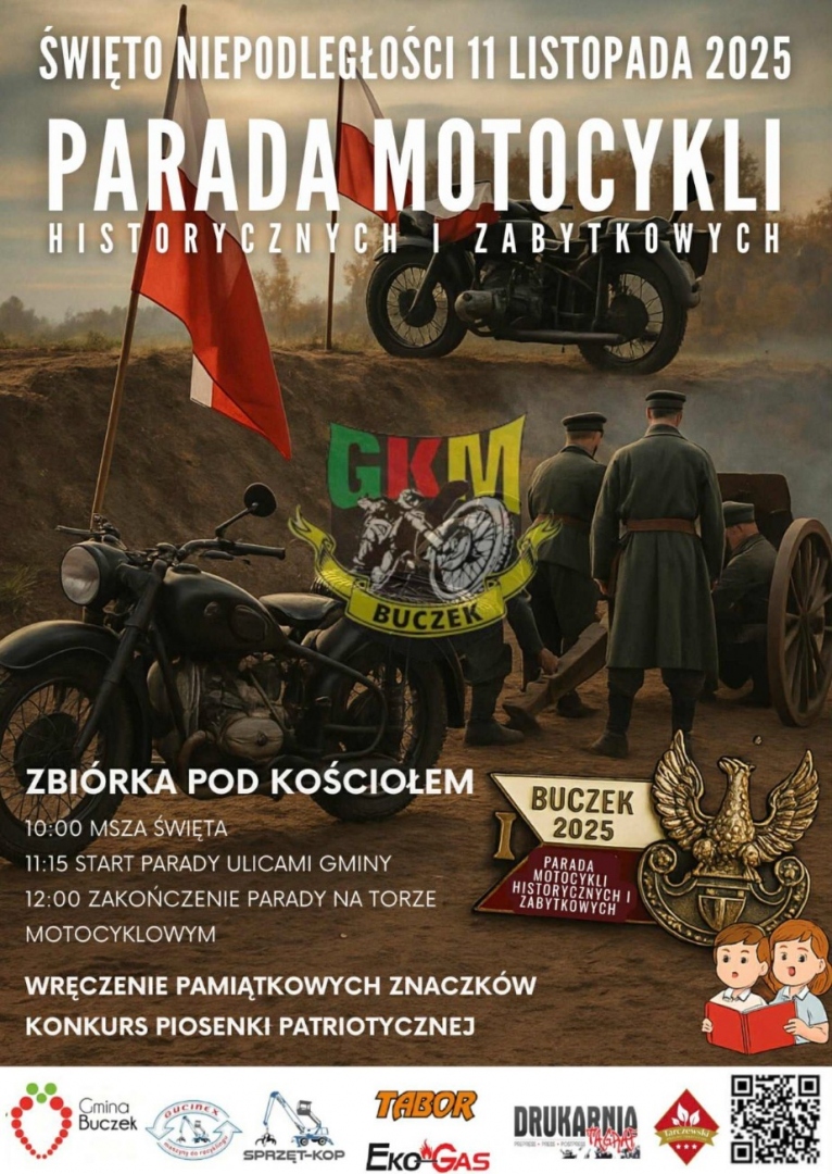 12:00 + Integracja uczestników wydarzenia ,poczęstunek ,konkurs piosenki patriotycznej oraz pokazy motocyklowe na torze