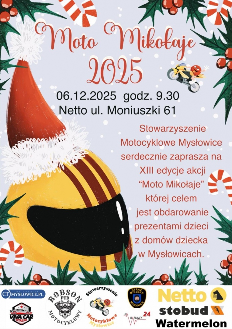 Jak co roku Stowarzyszenie Motocyklowe Mysłowice zaprasza wszystkich motocyklistów, sympatyków i mieszkańców do udziału w wyjątkowej akcji Moto Mikołaje 2025!