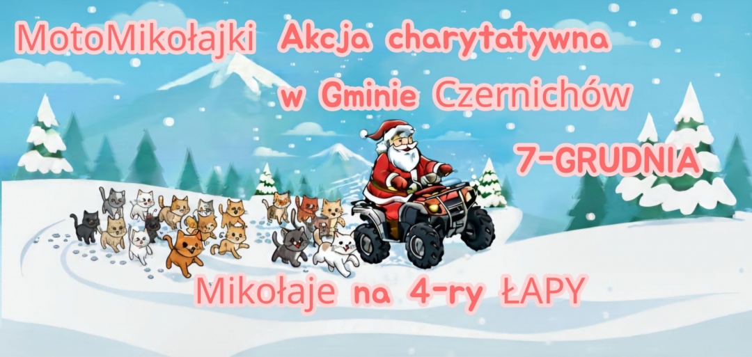 Już 7 Grudnia 2025 ruszamy z Motomikołajkami – akcją charytatywną, którą organizujemy w Gminie Czernichów, aby wesprzeć bezdomne koty! 🐈⬛ Pomóżmy wspólnie kociakom przetrwać zimę!