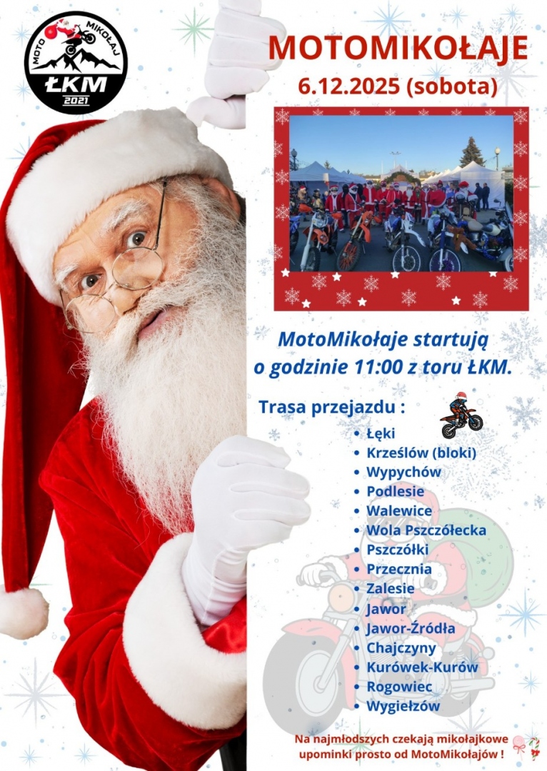 W sobotę, 6 grudnia, od godziny 11:00 członkowie naszego Klubu Motocyklowego ŁKM Łęki przejadą w świątecznej akcji MotoMikołaje przez okoliczne wsie.