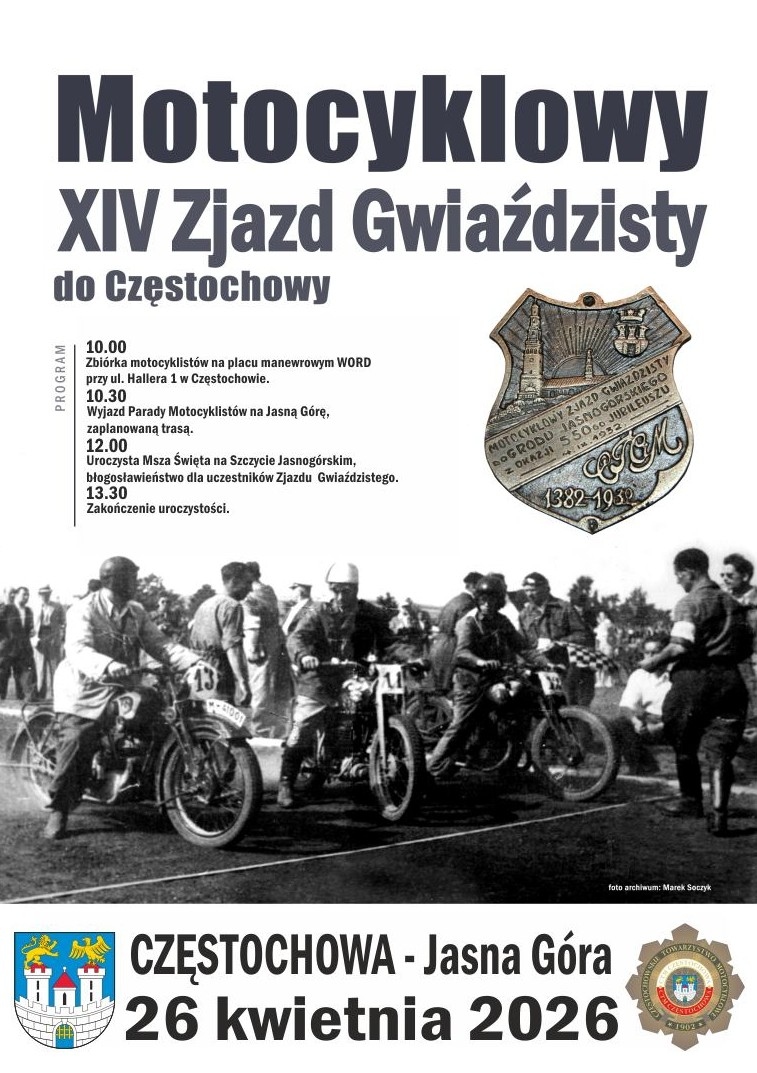 W imię pielęgnacji tradycji historycznej, która w latach trzydziestych XX w. stała się początkiem Motocyklowych Zjazdów Gwiaździstych do Częstochowy, corocznie w kwietniu organizujemy spotkanie motocyklistów z całej Polski, aby zainaugurować uroczystą Mszą Św. i motocyklową paradą przez nasze miasto, kolejny udany sezon.
