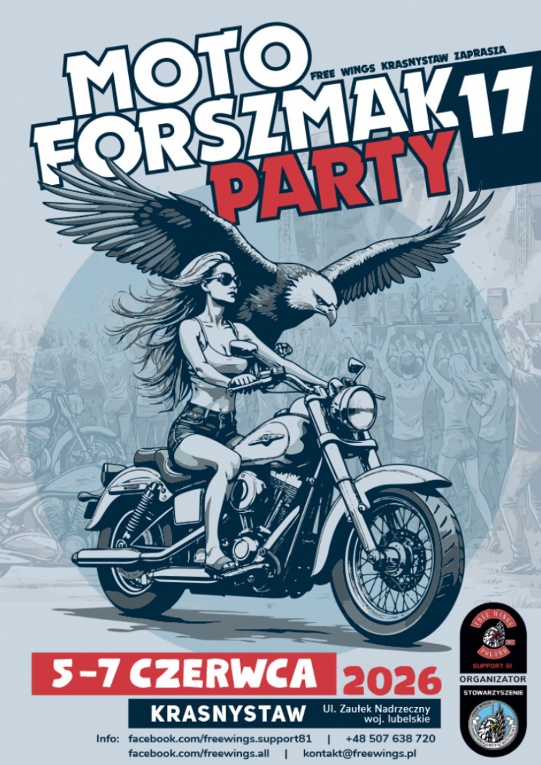 Zapraszamy Was do sennego Krasnegostawu nad szemrzącą rzeką Wieprz, gdzie po raz 17-ty odbędzie się Moto Forszmak Party!!!