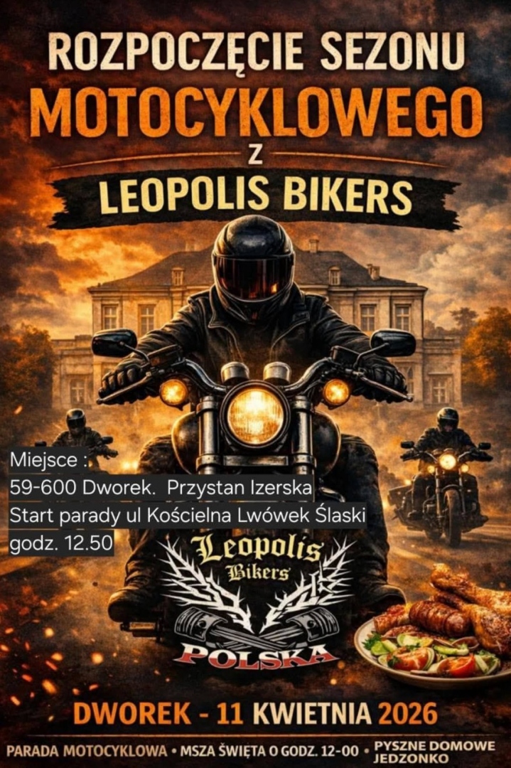 Rozpoczęcie Sezonu Motocyklowego Lwówek Śląski 2026. Start Parady Lwówek Śląski godzina 12,50.