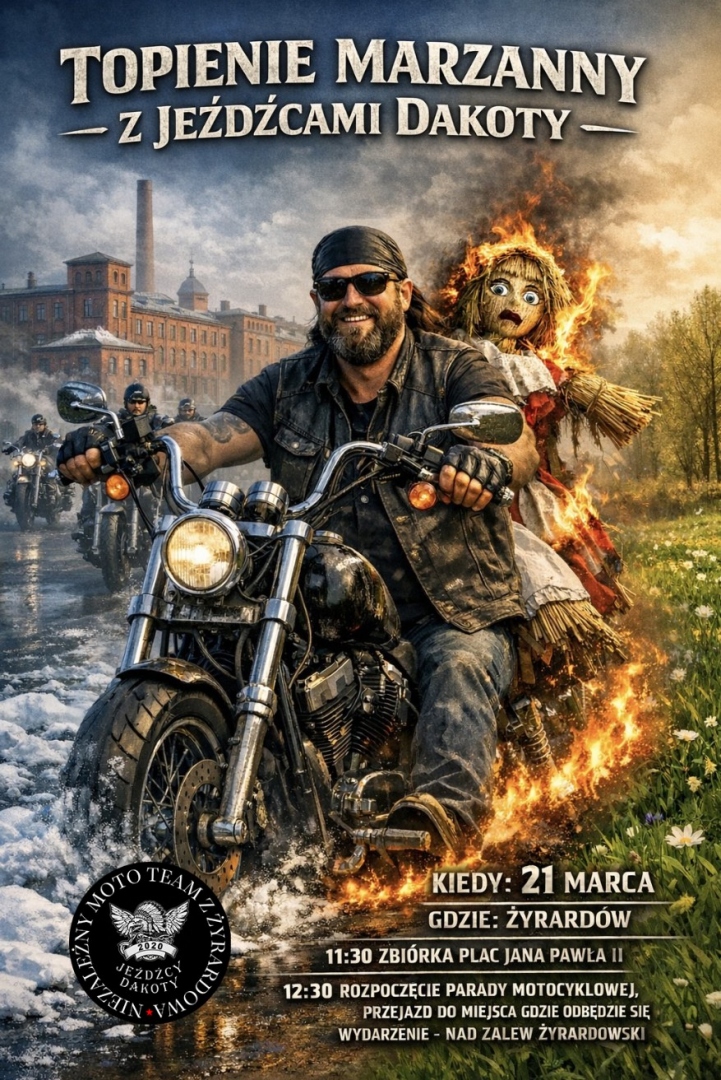 Jeźdźcy Dakoty zapraszają motocyklistów na powitanie wiosny do Żyrardowa, rozprawimy się z Marzanną i na dobre wjedziemy w kolejny cudowny sezon.
