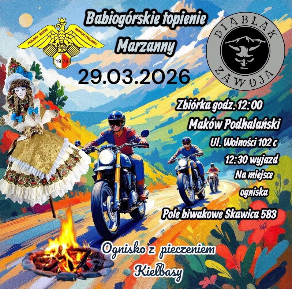 29 Marca zapraszamy wszystkich motocyklistów oraz sympatyków do wspólnego przywitania wiosny, oraz symbolicznego rozpoczęcia sezonu motocyklowego.