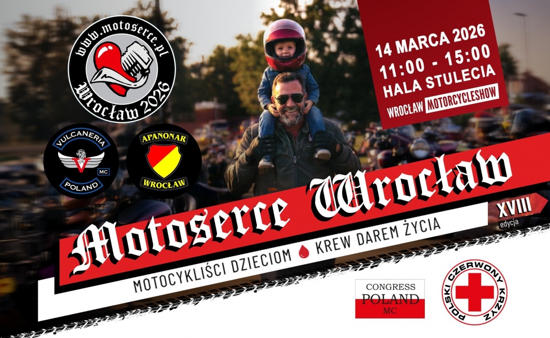 W tym roku obchodzimy 18 lecie akcji Motoserce w Polsce! Już dziś zapraszamy wszystkich mieszkańców Wrocławia, województwa dolnośląskiego i nie tylko, krwiodawców oraz pasjonatów motoryzacji przed Halę Stulecia w sobotę 14.03.2026 gdzie odbędzie się nasza akcja zbiórki krwi!