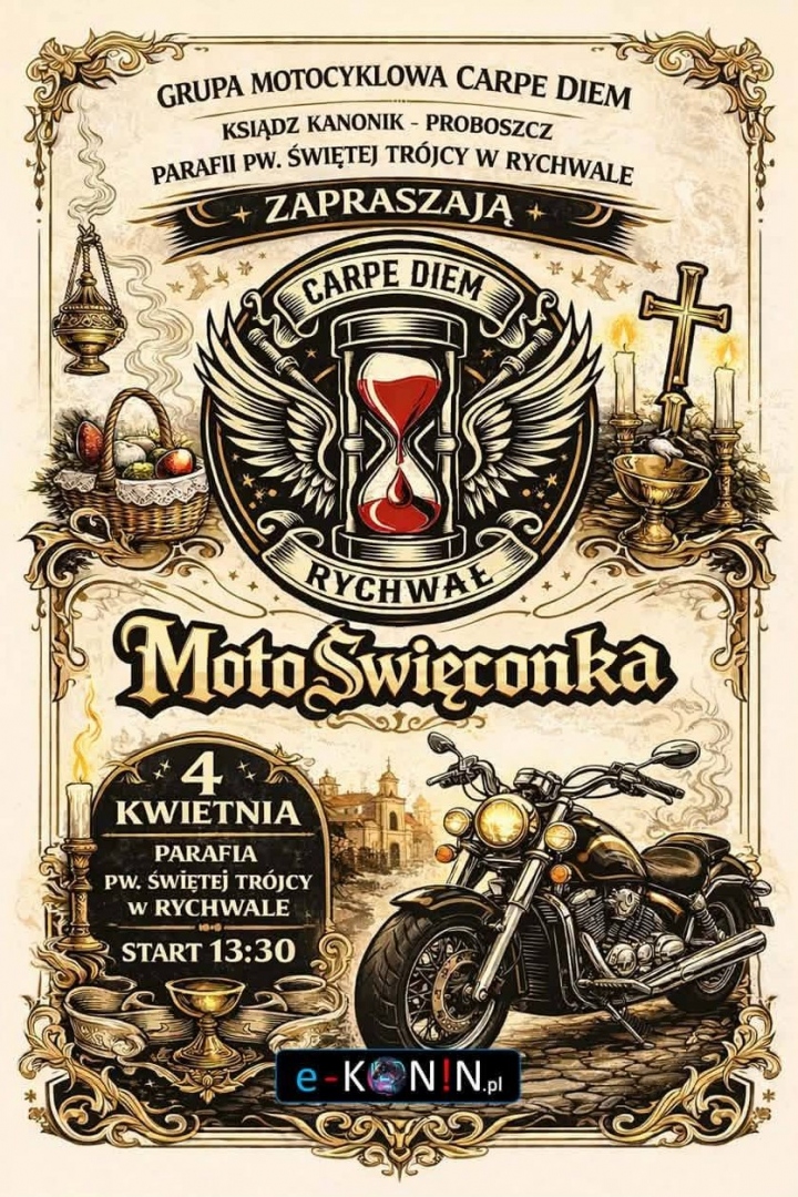 Zapraszamy na MotoŚwięconkę organizowaną przez Grupę Motocyklową Carpe Diem wraz z księdzem kanonikiem – proboszczem parafii pw. Świętej Trójcy w Rychwale.