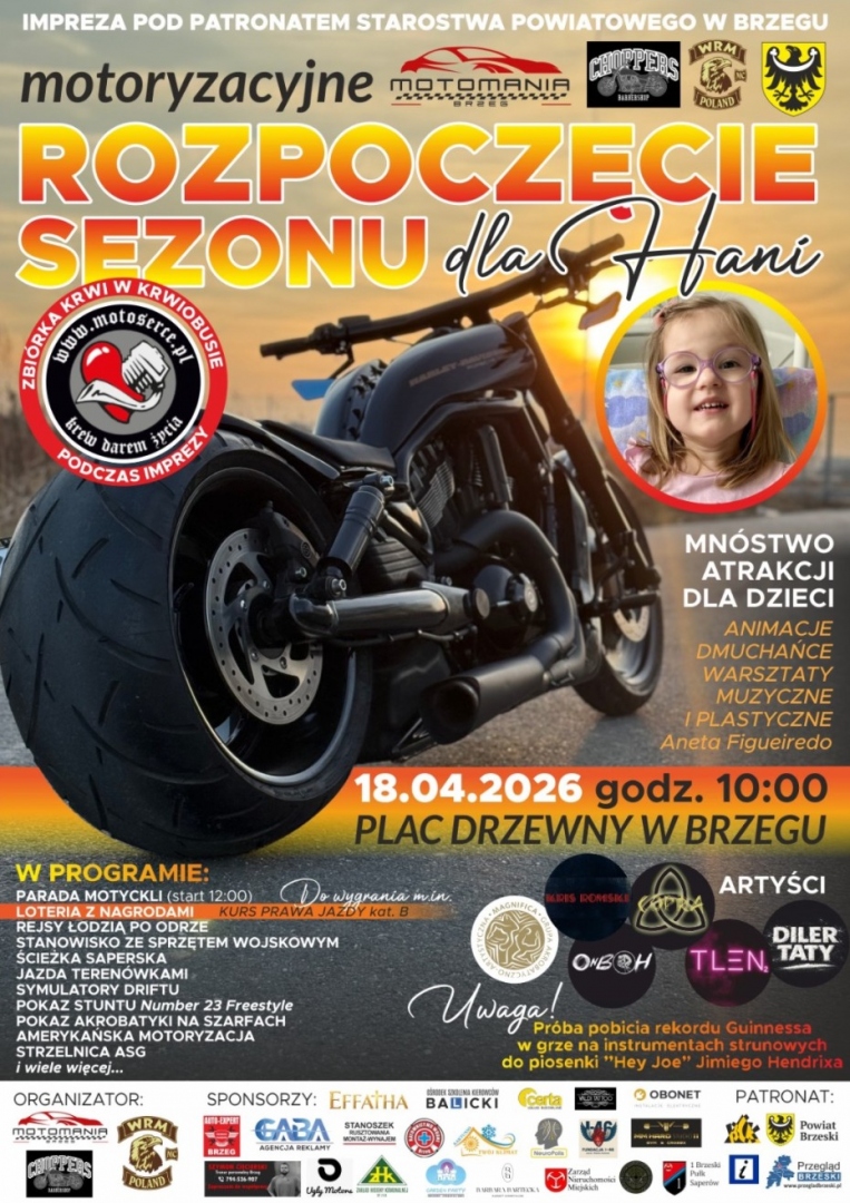 Zapraszamy Was serdecznie na wyjątkową imprezę charytatywną poświęconą Hani Drążek. To będzie niezwykły dzień pełen pasji, pięknych motocykli i samochodów. Pokażmy razem, że motoryzacja to siła, która łączy i potrafi czynić dobro. Dołączcie i wspólnie z nami wesprzyjcie ten wspaniały cel!