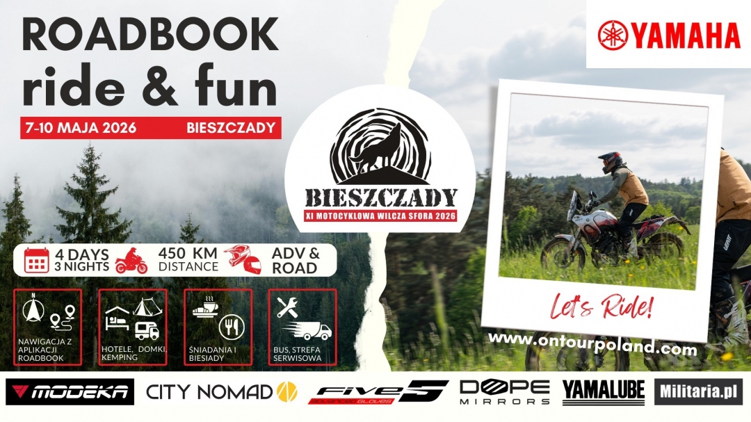 W 2026 roku spotykamy się od czwartku do niedzieli, aby wspólnie przemierzać bieszczadzkie drogi, szutry i zakamarki, korzystając z legendarnych już roadbooków On Tour Poland. Udział może wziąć każdy — bez względu na markę, wiek czy rodzaj motocykla.
