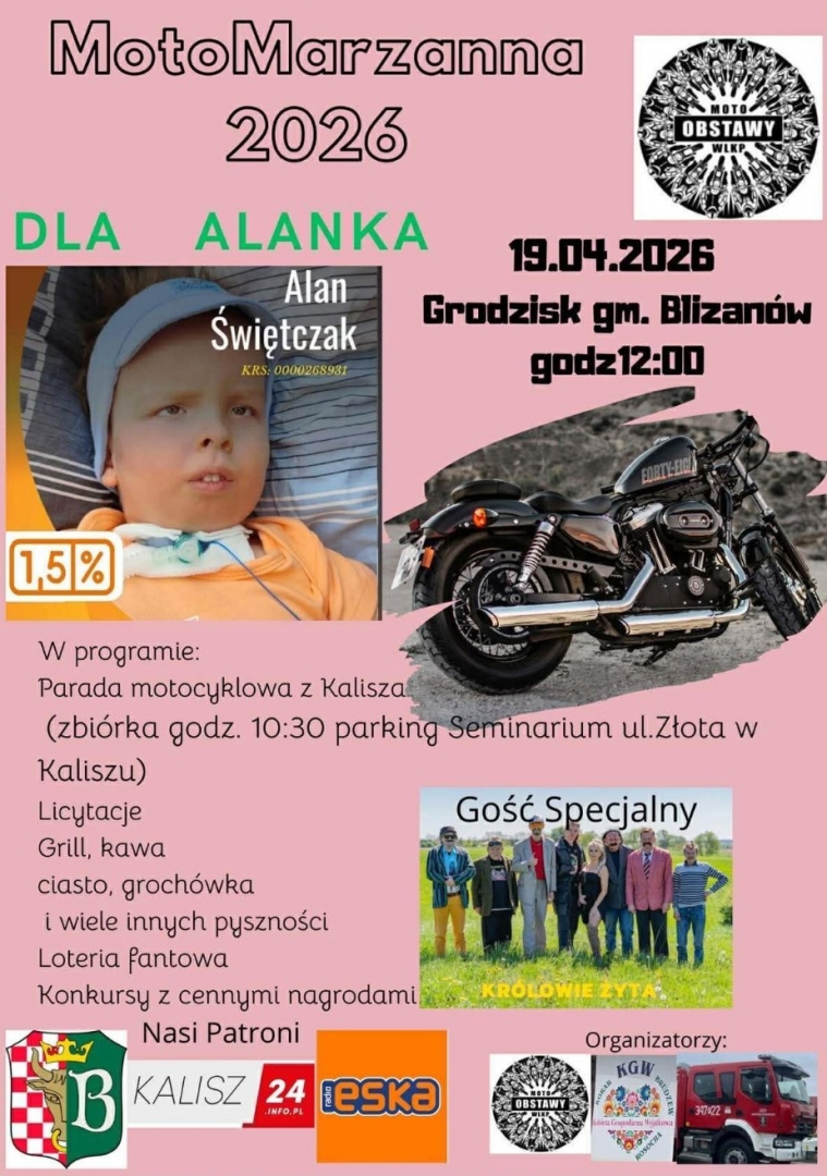 Trzecia edycja imprezy rozpocznie się tradycyjnie paradą motocyklową, która wystartuje o godzinie 11.00 z ulicy Złotej przy Technikum św. Józefa w Kaliszu i pojedzie do Grodziska w gminie Blizanów.